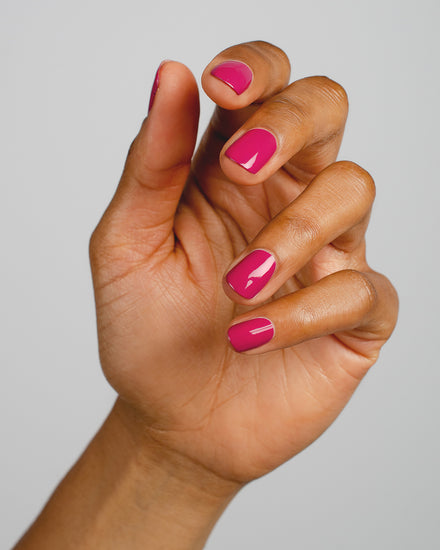 fuschia pink nail polish hand swatch on fair skin tone