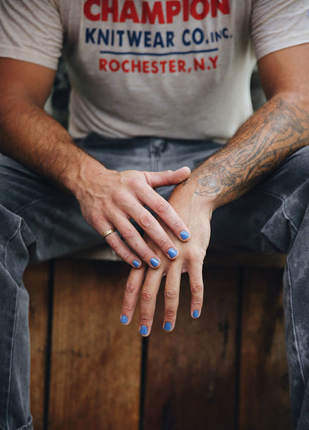 Electric blue nails for days. This blue nail polish is a little bit retro, a little bit cool and a little bit whimsical. Kombi pairs well with vintage band tees, your vinyl collection, café hangs and fresh flowers.
